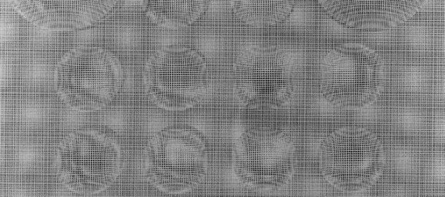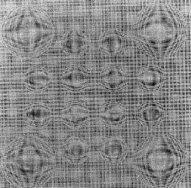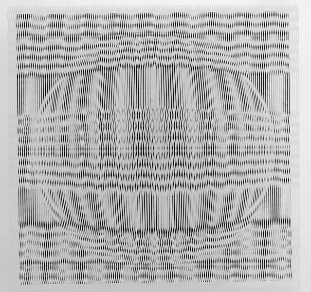 La transformación como tal es más que un efecto de moirée. Ramírez la logra superponiendo dos láminas de acrílico –cada una con una determinada composición lineal–, estampadas mediante la técnica serigráfica. Sin embargo, la esfera como tal no existe. Existen relaciones de líneas que, según su cambio de dirección y densidad (cercanía o distancia en el tramado) generan ilusión de volumen. Hay una relación de luz y sombra que produce este efecto. Sin embargo, ello queda en el ámbito de lo ficticio porque no existe un claroscuro sino una interrelación de líneas, sucesiva y sistemática. La superposición de láminas tramadas y sus variaciones direccionales son las que inducen a ver estas esferas ilusorias que vibran ante nosotros como impresiones visuales. Éstas se convierten en sueños o ilusiones que se transforman con la misma sutileza que las gotas de agua.