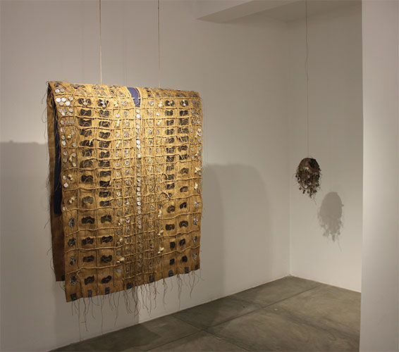 Milton Becerra es un creador muy ligado a la materia, un materializador. Esto tiene tras de sí una doble historia: tanto la de su propia trayectoria artística –hacedora, constructora– como otra, cultural y más amplia: la de un pueblo que teje y entrelaza. El artista reúne formas –iguales o disímiles– a través del nudo y las lazadas, pero sobre todo crea espacios y situaciones enteramente nuevos, más allá del acto de juntar algo con algo: una roca con otra, una moneda con una semilla o una piedra preciosa.
