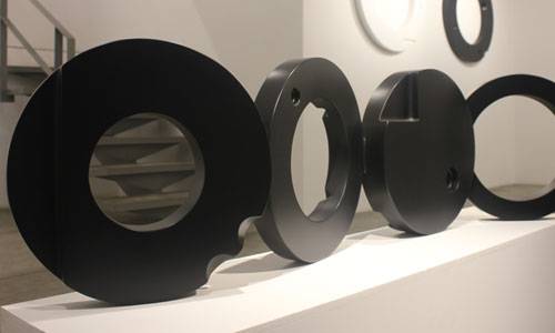 En esta oportunidad, Moros toma los espacios de BEATRIZ GIL Galería , con un grupo de esculturas que resaltan el círculo como propuesta. Estas obras que se construyen a partir de materiales industriales, como el hierro por ejemplo, las convierte en piezas de impecables acabados, utilizando colores sublimes como el blanco, el negro y el plata.