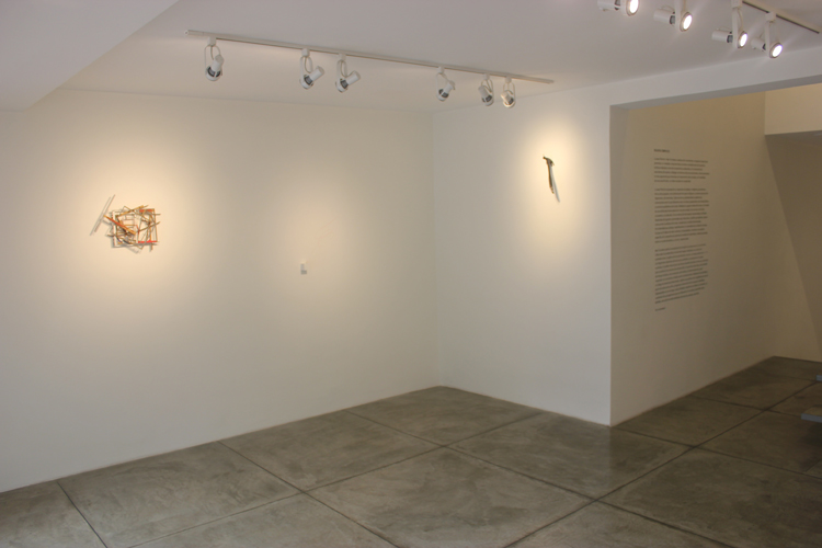 Para esta exposición, Ana Tiscornia presenta un compacto cuerpo de trabajo el cual transcribe el relato anónimo y desarticulado que precede a cada una de las piezas. El desarrollo conceptual y plástico de esta singular serie de estructuras recrea una arquitectura que no es tal, un diseño que se materializa mediante el ensamblaje de tiras de cartón y el collage de diversos elementos desechados. Se consolida, así, como recurso formal que opera en la deconstrucción y progresiva reinvención de los espacios habitables, percibidos como entidades metafóricas. Estos espacios intervenidos y sobrevenidos en un no-lugar exhiben el contenido y el continente de una memoria y una experiencia vital que, al igual que sucede en toda la magnitud de su diversa propuesta, se relacionan en un sentido trágico de la idea de pérdida, tanto del recuerdo individual como de los eventos históricos y colectivos.