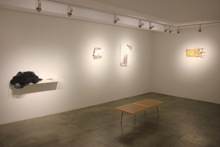 Fundamentada en el uso de una geometría rigurosa y flexible a la vez, que se desarrolla a partir de la manipulación e intervención de diversos materiales, Ana presenta en su propuesta individual, una singular serie de estructuras que recrean una arquitectura que no es tal, “un diseño que se materializa mediante el ensamblaje de tiras de cartón y el collage de diversos elementos desechados (…) como recurso formal que opera en la deconstrucción y progresiva reinvención de los espacios habitables, percibidos como entidades metafóricas”.