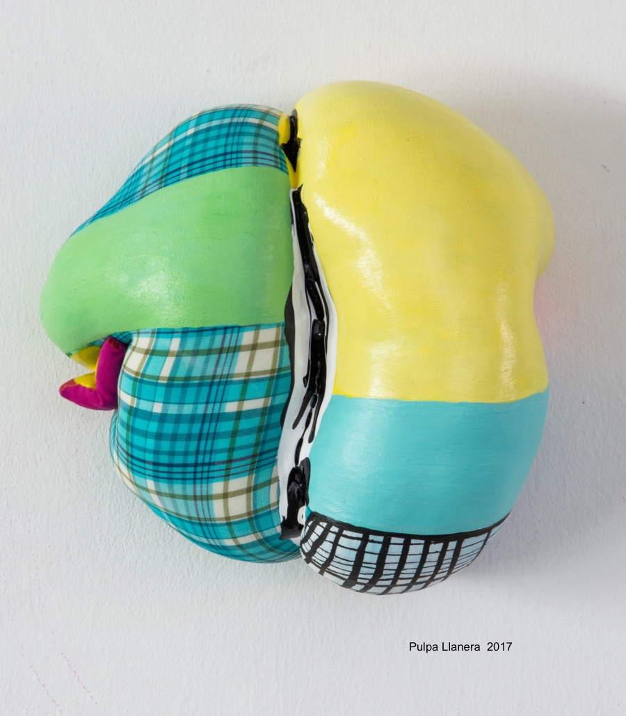 En los actuales procesos de ruptura, la conciencia de lo híbrido y lo trans-disciplinario originan áreas de coexistencia, encuentros y conexiones entre diferentes registros, tanto en lo que se refiere a las técnicas contemporáneas de producción artística como a las tradicionales. Ambos conceptos propician préstamos, apropiaciones, contaminaciones y cruzamientos entre los procedimientos y las metodologías de creación, cuestionando los rígidos dog- mas de una modernidad racional y estructurada, plenamente formalista. En los albores de su práctica artística, Labin se interesa en redimensionar las claves del expresionismo abstracto y las del Pop Art norteamericanos, al tiempo que recurre al vigoroso cromatismo de las diferentes corrientes expresionistas alemanas. En un ejercicio por reinterpretar —a partir de una consciente asimilación crítica—, los postulados geométricos y abstractos de las di- versas vanguardias europeas, su obra se distancia de los formatos convencionales para iniciar un dilatado y consecuente proceso en el cual las pinturas comienzan a segmentarse en pequeñas piezas cuadrangulares, reordenándose en un desarrollo autónomo, aunque estructurado sobre el muro intervenido, como lo evidencian las series iniciales Confeti y Pasta Dominical. Es a partir del nuevo milenio cuando se emancipa de los rígidos límites del marco para configurar un inusitado universo de pinturas y volúmenes autónomos o agrupados en constelaciones independientes. En estas propuestas se reconcilian las estrategias formales del espacio representativo en una experiencia sensible, exótica, cromática y maximalista formulada, no solo a partir de los recursos de la tradición absorbida, también mediante el uso de materiales extra pictóricos tales como telas, tejidos, hilos y texturas artificiales que operan desde entonces como elementos sucedáneos, sustitutos de la pintura. Ya las Cassatas anticipaban formas más concretas y orgánicas participando, simultáneamente, de un desprendimiento progresivo de las superficies habituales. A partir de esta exploración su propuesta se consolida en un lenguaje estético pleno y desbordado, arraigado en una memoria emocional distante y en la proliferación de iconografías recuperadas de la exuberante sensibilidad caribeña y tropical. Para Labin la pintura se disuelve así en una experiencia cotidiana y subjetiva que adquiere sentido en la percepción de un caleidoscopio de imágenes retenidas en sus remotas visiones vernáculas, fruto de una imaginación fantasiosa asociada al lugar de la infancia, al juego, a los placeres golosos, a la soporífera siesta 40 grados a la sombra; a la casona familiar; a la madre, las tías y abuelas; a las nodrizas y cocineras goajiras. A la mezcla y al contraste inconmensurable de culturas. Pulpa chic (2001-2016) su más amplio y ecléctico cuerpo de trabajo, realizado hasta la actualidad, incorpora disímiles estrategias de producción y configura un sistema diferenciado de formatos heterogéneos que traspasan indistintamente las fronteras del espacio representado, pues en su desarrollo redefinen «la tercera dimensión de la pintura». Objetos, esculturas y «cuadros» se despliegan ahora en una serie de entidades mórbidas y esponjosas: superficies acolchadas y tapizadas con retazos de las más insólitas y extravagantes materias, texturas y tejidos flexibles, de gran plasticidad y ornamento. En estas piezas, la pintura propiamente dicha -ahora monocroma- fluye libre sobre la tela estampada y se infiltra en los intersticios de los volúmenes y masas amorfas, en una acción que permite delinear y enfatizar sus contornos. Suaves y maleables, estos cuerpos ensamblados revelan una sensualidad de naturaleza femenina, fértil, cálida y fecunda; pero también, sus intrincadas formas orgánicas sugieren la abstracción fantástica y apócrifa de un ecosistema bizarro. Expresan en su conjunto la esencia y los atributos barroquizantes, recargados, profusos, generosos, desordenados, excesivos y festivos: reminiscencias evocadoras de una cultura nativa. Estructuras híbridas, alzadas, suspendidas o en reposo, –columnas, piñatas, truncas, tocados y vestiduras–,representan una alegoría suculenta, pulposa y voluptuosa que opera no solo en su capacidad de renovación creativa sino también dialoga en resonancia con la interpretación visual de su universo.