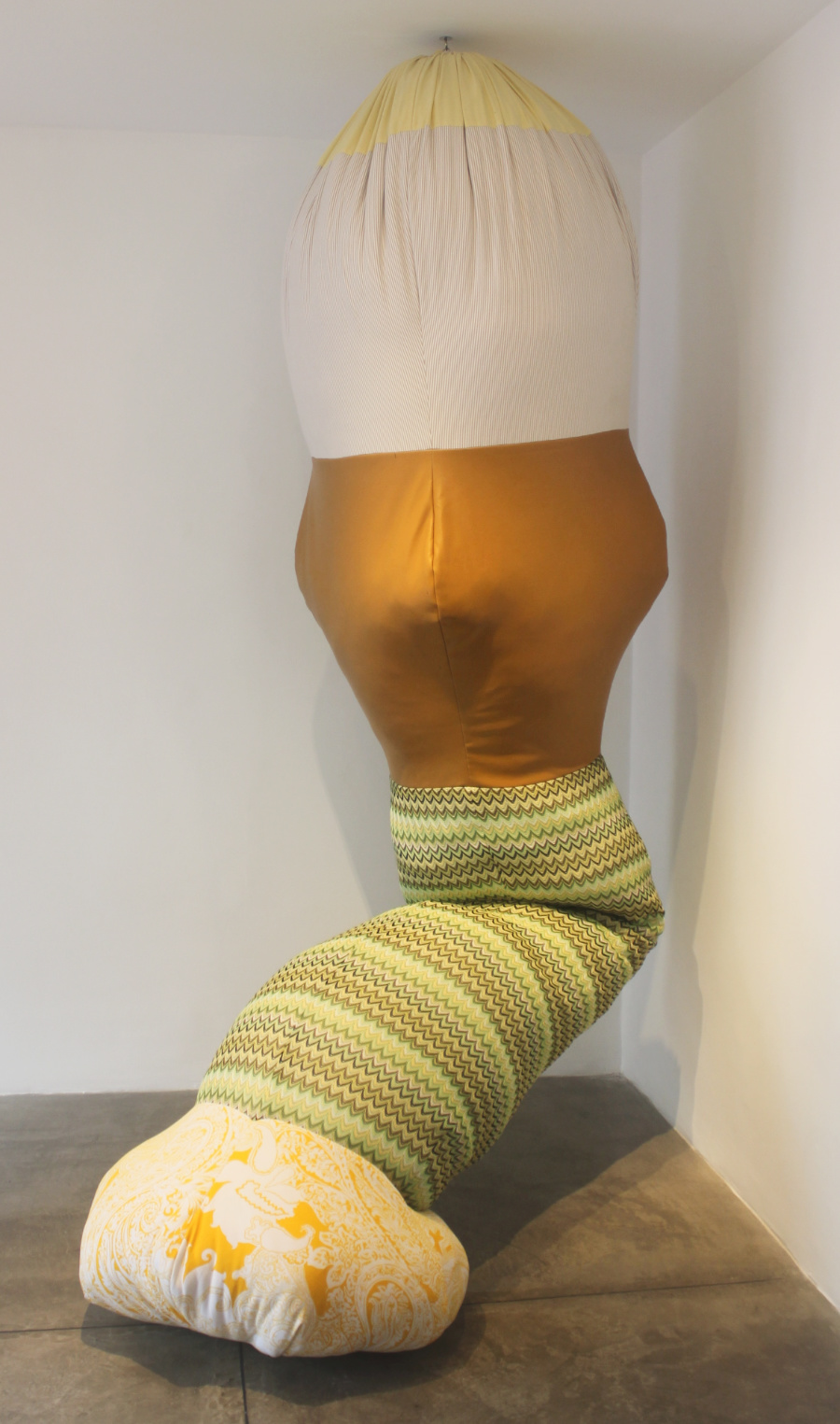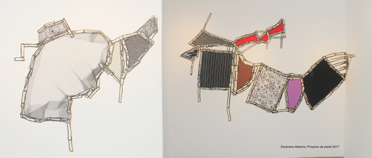 En esta oportunidad, sus pinturas y diversas instalaciones escultóricas se apropian del espacio museográfico en una intervención consciente y libérrima a la vez. Allí se expanden mórbidas Pulpas—unas de factura minimalista y colores deslumbrantes, otras mas complejas y saturadas; mientras las Piñatas, las Truncas y los Talismanes despliegan sus generosas curvaturas, un Escenario mural de materiales y formas diversas se adapta al espacio y asimismo, el Cosido Lunar —construido a partir del collage de telas multicolores y la intervención pictórica— impone sus amplias dimensiones; finalmente, en el Cosido Astral, una secuencia de 21 piezas de mediano formato sobre papel, se ensamblan mediante la acción artesanal de la costura, diversos fragmentos que recuperan para la artista la necesidad exploratoria del dibujo como lenguaje gráfico universal.