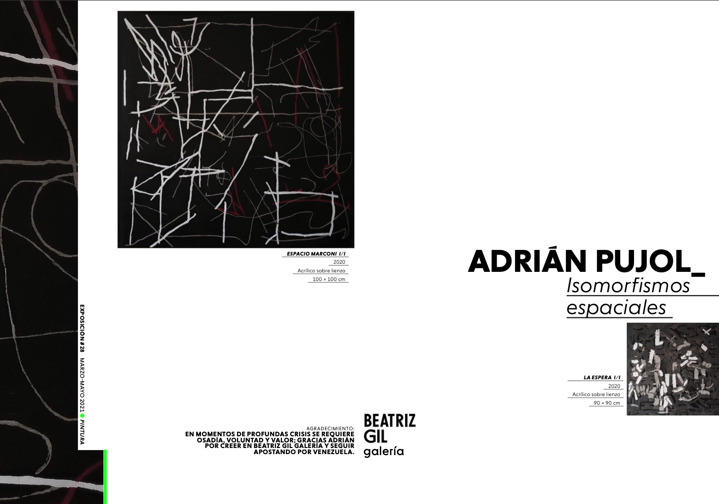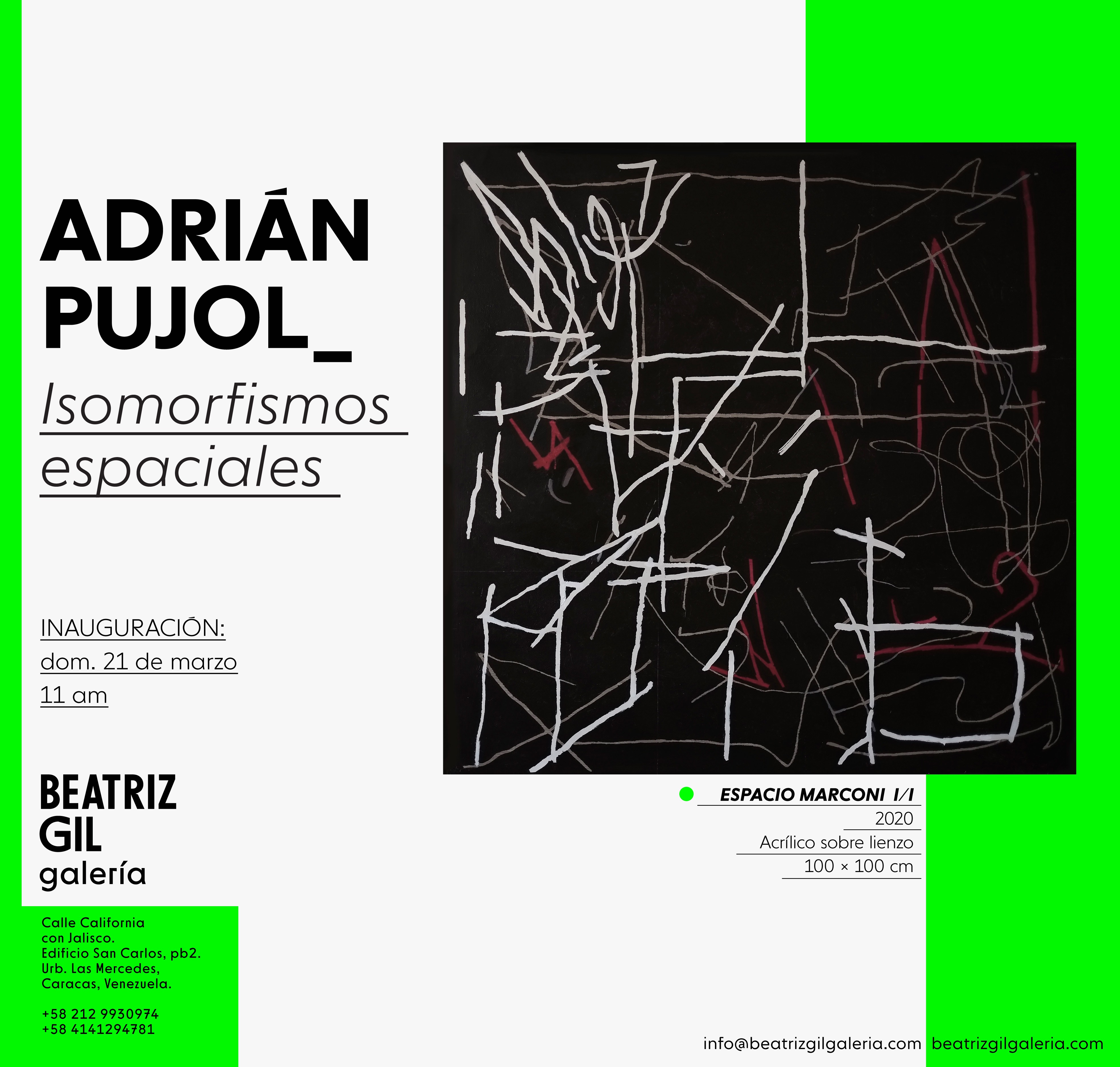 Esta individual de Adrián Pujol, reúne un conjunto de obras de su última producción artística, realizadas desde isla de Mallorca. La muestra consiste en un repertorio de pinturas realizadas en acrílico sobre lienzo de mediano y gran formato y un conjunto de acuarelas sobre papel.