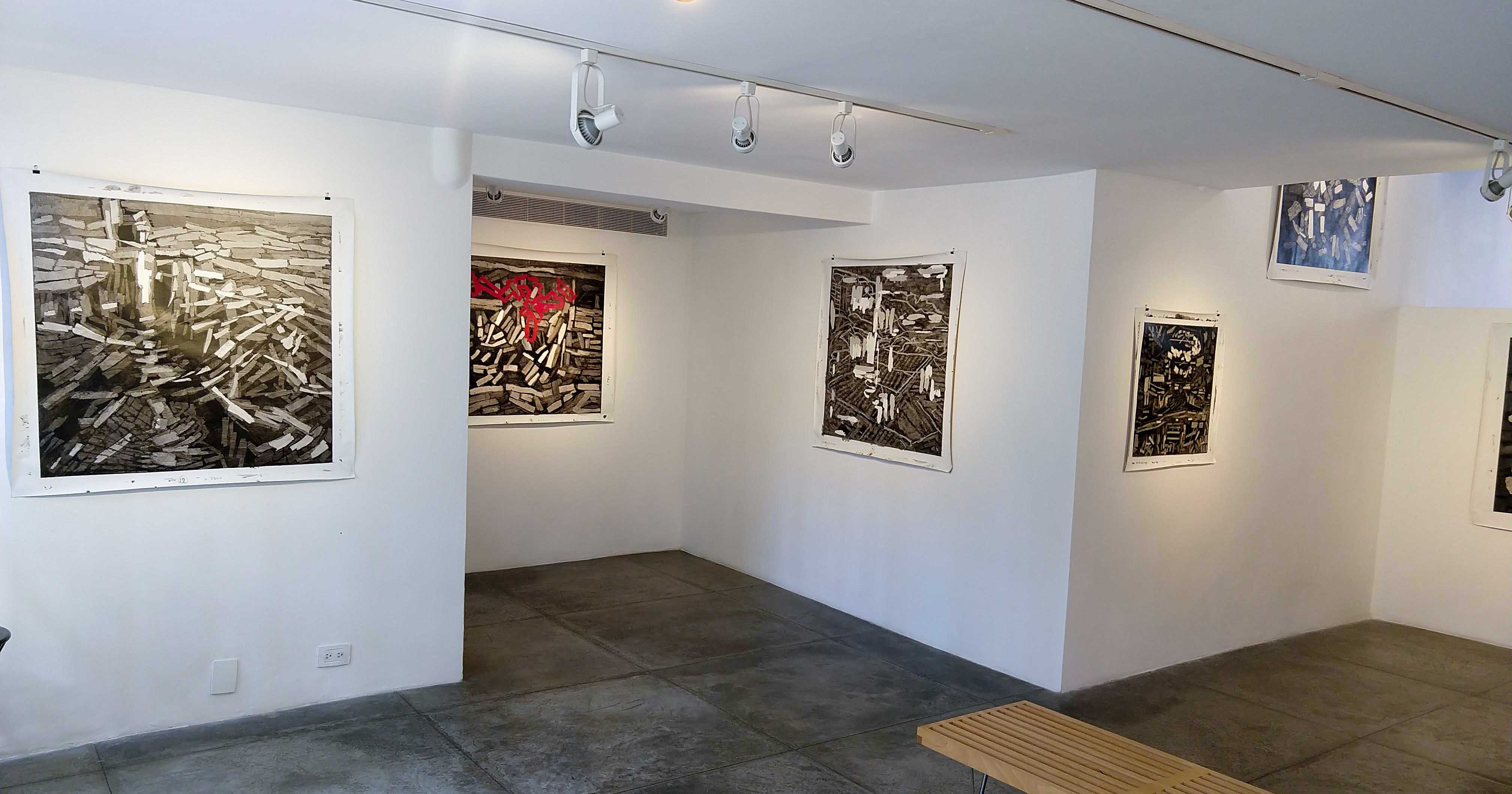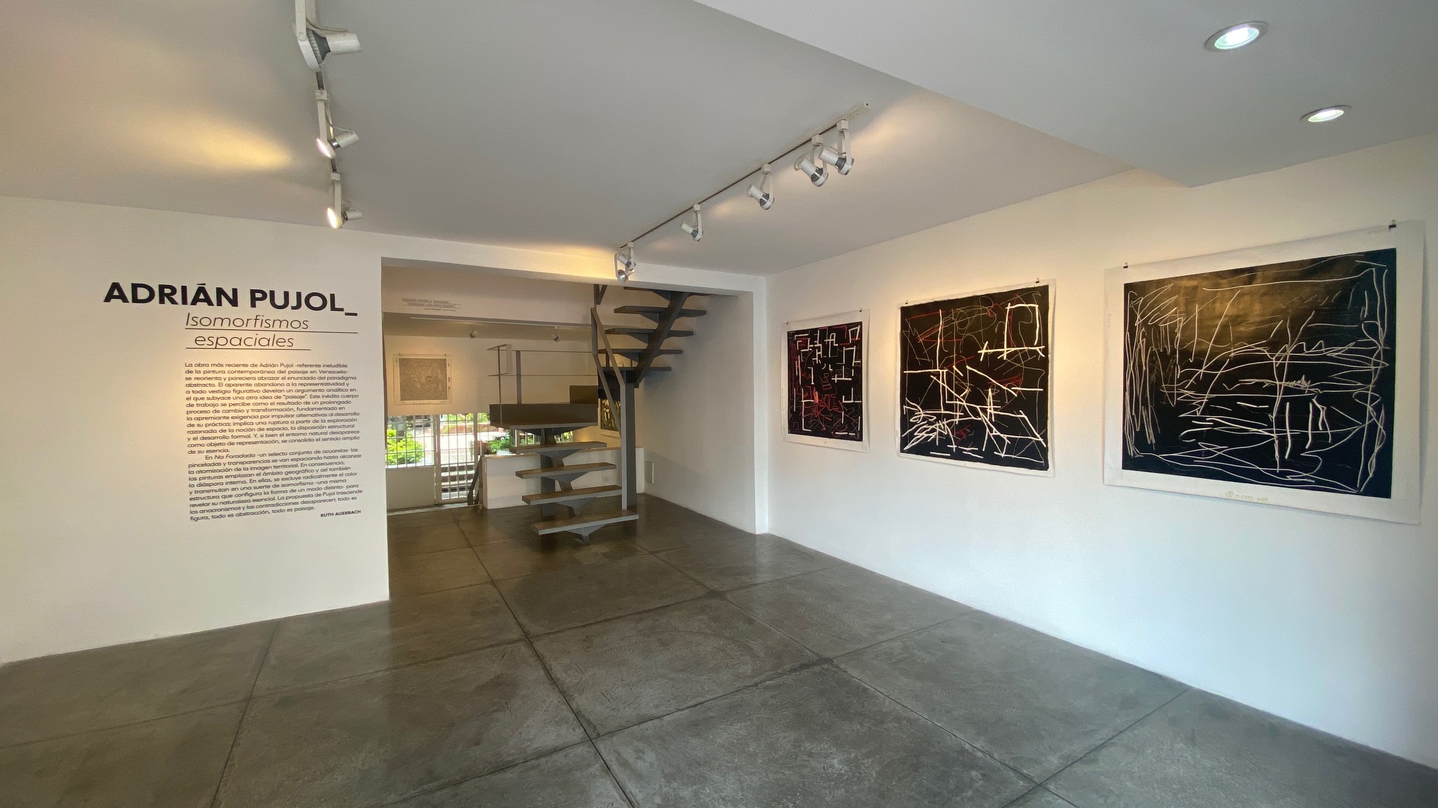 Para la curadora, Pujol concibe la suite de acuarelas Na Foradada, como resultado del reencuentro con el panorama natal, en ellas las pinceladas y transparencias se van espaciando hasta alcanzar la atomización del paisaje estructurado. Esta desarticulación de la imagen “lo lleva a crear una serie de pinturas que instauran el quiebre más trascendente de su producción. De raíz, excluye el color y libera la estructura compositiva… ”, el artista, acota,“ transmuta la estructura reticular subyacente del cuadro en una suerte de isomorfismo -una misma estructura que configura la forma de un modo distinto- para revelar su naturaleza esencial . Las blancas líneas intervienen anárquicas el fondo negro y nos reintegran un dibujo en negativo en el que se deslastra lo innecesario. ” En ellas todo es figura, todo es abstracción, todo es paisaje. Espacio Marconi,