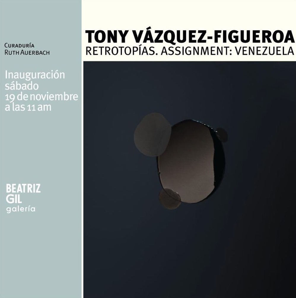 Retrotopías. Assignment: Venezuela reúne un significativo cuerpo de trabajo en el cual se despliegan diversas aristas de un mismo tema, percibidas desde una mirada distanciada y una revisión crítica de los procesos. Se fundamenta en el término propuesto por el sociólogo Zygmunt Bauman quien estudia la noción de retrotopía como un fenómeno contemporáneo, inverso a las utopías modernas y que explora la tendencia a volver a los paradigmas del pasado, buscando mejorar las condiciones futuras de la humanidad. La propuesta expositiva de Vazquez-Figueroa se vale de diversos medios y técnicas de repesentación, utilizando el crudo y sus derivados sintéticos para configurar un variado conjunto de obras. Cada una de ellas, conlleva un proceso de resignificacion y transmutacion de los códigos de una impronta personal que incorpora, entre otros elementos, el hueco o “vacío”, la supeficie negra y su reflejo , así como las relaciones entre opuestos: la representacion y su abstracción, el brillo y la opacidad, la arquitectura y las soluciones informales. El suyo, debemos entenderlo como un sistema de signos que revela las estructuras de una lógica universal. Las series Black Mirror Box, Black Mirror Painting, Re/Emergence y Re/de/fined si bien se fundamentan en las estrategias constructivas de la tradición abstracto geométrica, su “inestabilidad perceptiva” permite activar la reflexión sobre los dilemas identitarios. Se suman las series Petropías y Black Archive, impresiones fotográficas de archivos de la época, en su mayoría anónimas, manipuladas e intervenidas con resinas, resultando en reproducciones referenciales para introducir, mediante la desestabilización de la imagen, una narrativa inédita cargada de sentido.