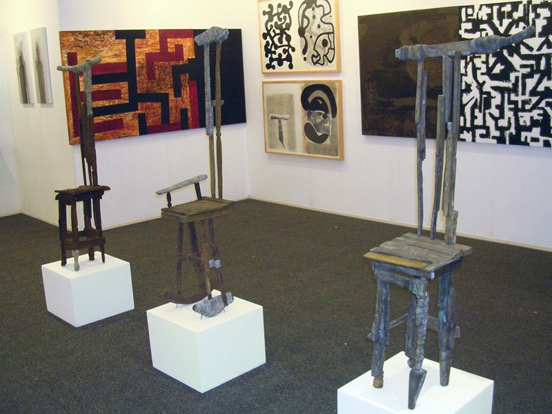 Las sillas de José Vívenes vaciadas en bronce constituyen una estimulante sorpresa en la FIA 2006. Estos ensamblajes, originalmente hechos de maderos y vestigios, son producto de un proceso de exploración y la transferencia de la madera al bronce, en vez de acallar la diferencia de las cualidades de textura y cromáticas de los fragmentos de la composición, profundiza la emoción del encuentro de sus diferencias.