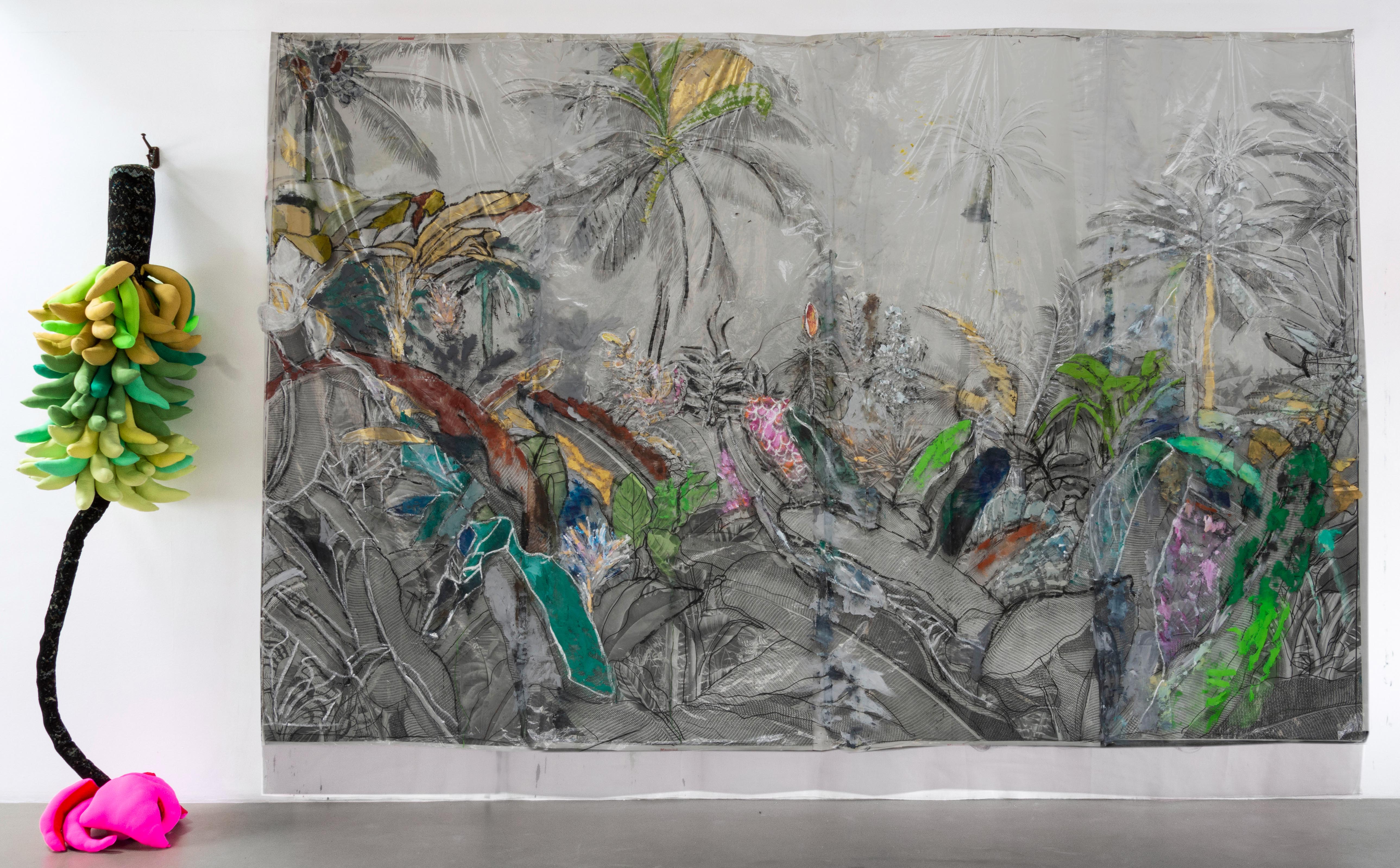 (Maracaibo, Venezuela,1946) vive y trabaja en Hamburgo. Su propuesta se fundamenta en la necesidad de explorar simbólicamente su condición de extranjera, que avanza hacia el encuentro de una identidad híbrida, resultado de una pluralidad de influencias. La instalación “Amazonia”, representa una manera de reconstruir un fragmento de la utopía tropical que resume su búsqueda.