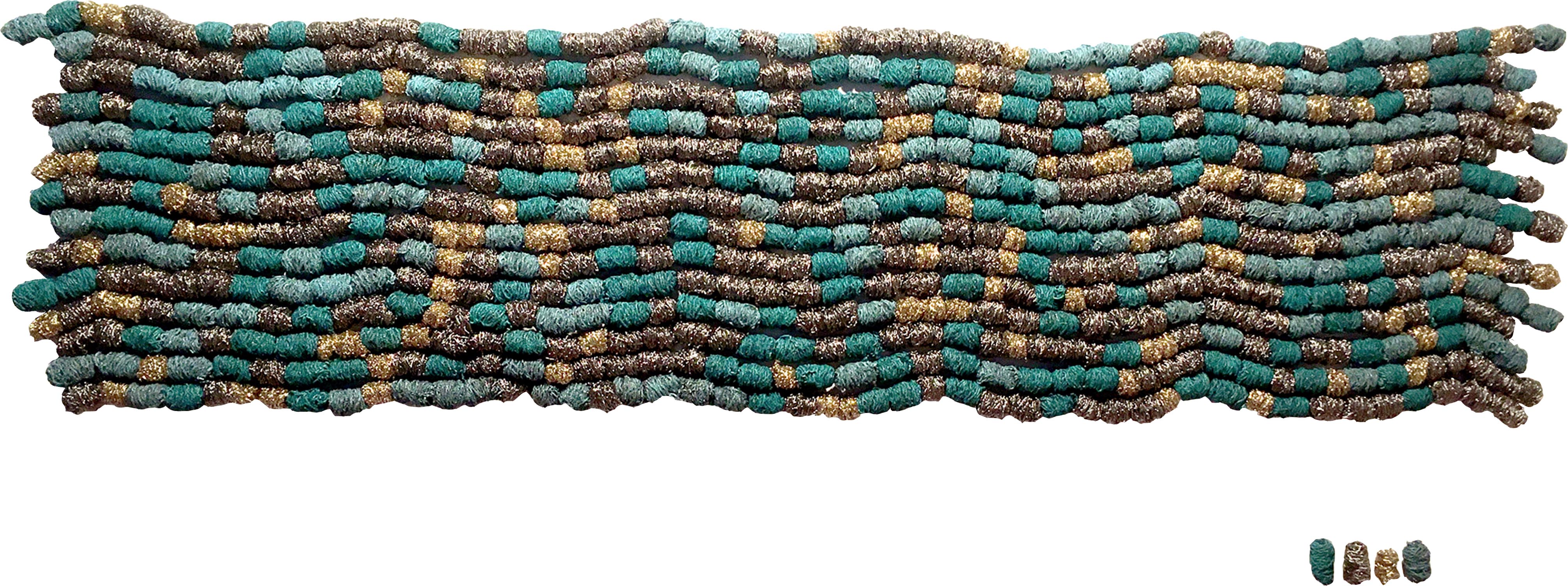 (Caracas, Venezuela, 1953), reside en Tenerife, España. El trabajo desarrollado en la última década nace de la investigación de secuencias genéticas que la artista re-escribe, mediante el uso de diversas prácticas de representación. Presenta dos contundentes tapices -elaborados con materiales industriales-, para configurar plásticamente el ADN de especies endógenas de la flora y fauna en extinción.