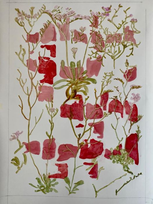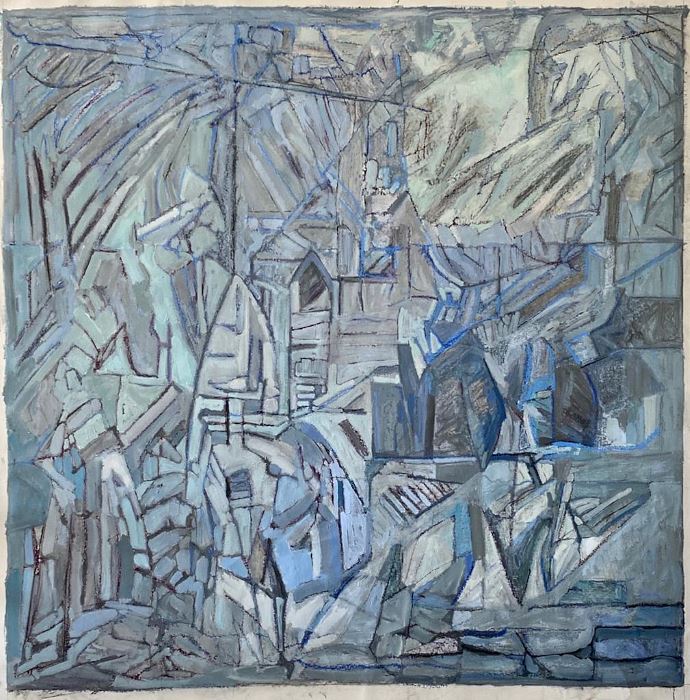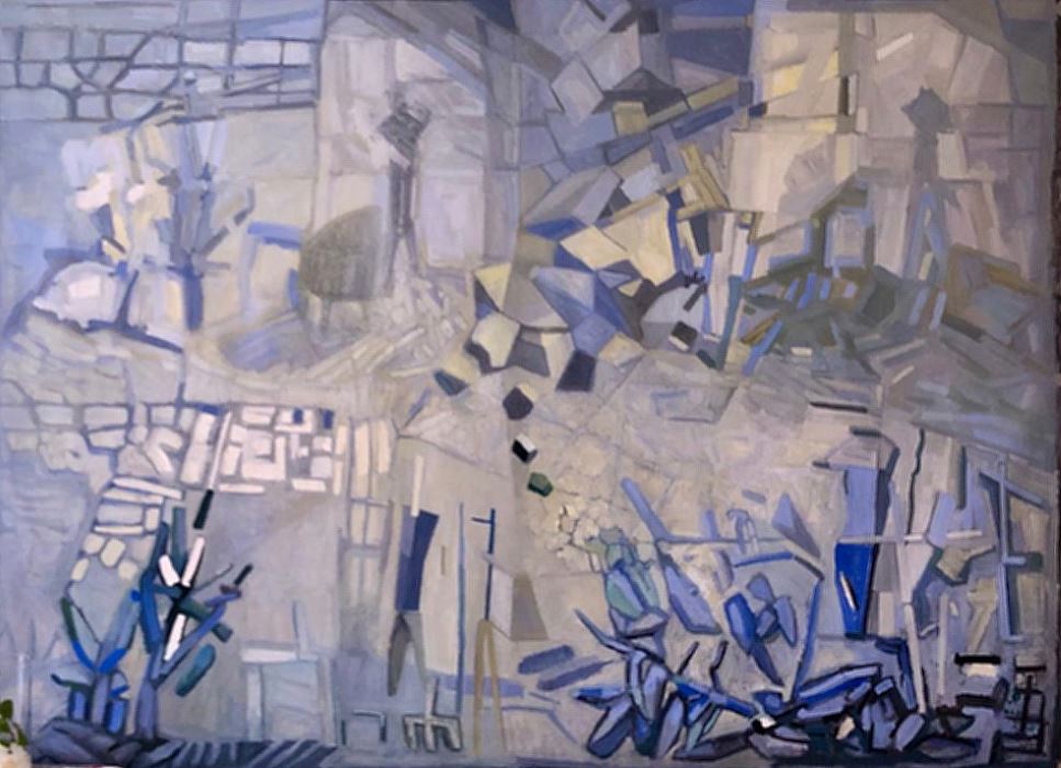 Estar en casa ha hecho que el paisaje territorial quede atrás, en el pasado. La pintura que ven es la historia de un vieje, el transito de un lugar a otro lleno de fragmentos, de geometrías que de algún modo dibujan un paisaje interior.