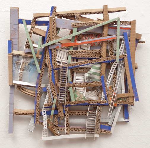 2014 | Green Strips | Carton, pintura, tela y malla de nylon | 30,5 X 31,7 X 5cm. |