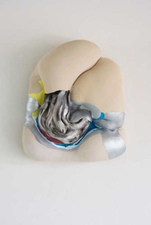 Pulpa Marmolina | 2017 | Lycras tapizada sobre marco de madera, rellena com algodón de poliéster, pintura acrílica | 30 x 35 x 13 cm.