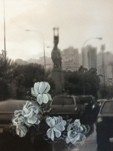 5 Malabares y Te lo pido | 2015 | Fotografía impresa calidad de museo sobre tela intervenida con acuarela y acrílico | 59 x 45 cm.