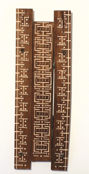 2004-2005 | Acrílico sobre madera, piedras, monedas, billetes de Bs.10, tiras de semicuero | 77 x 27 x 8 cm.