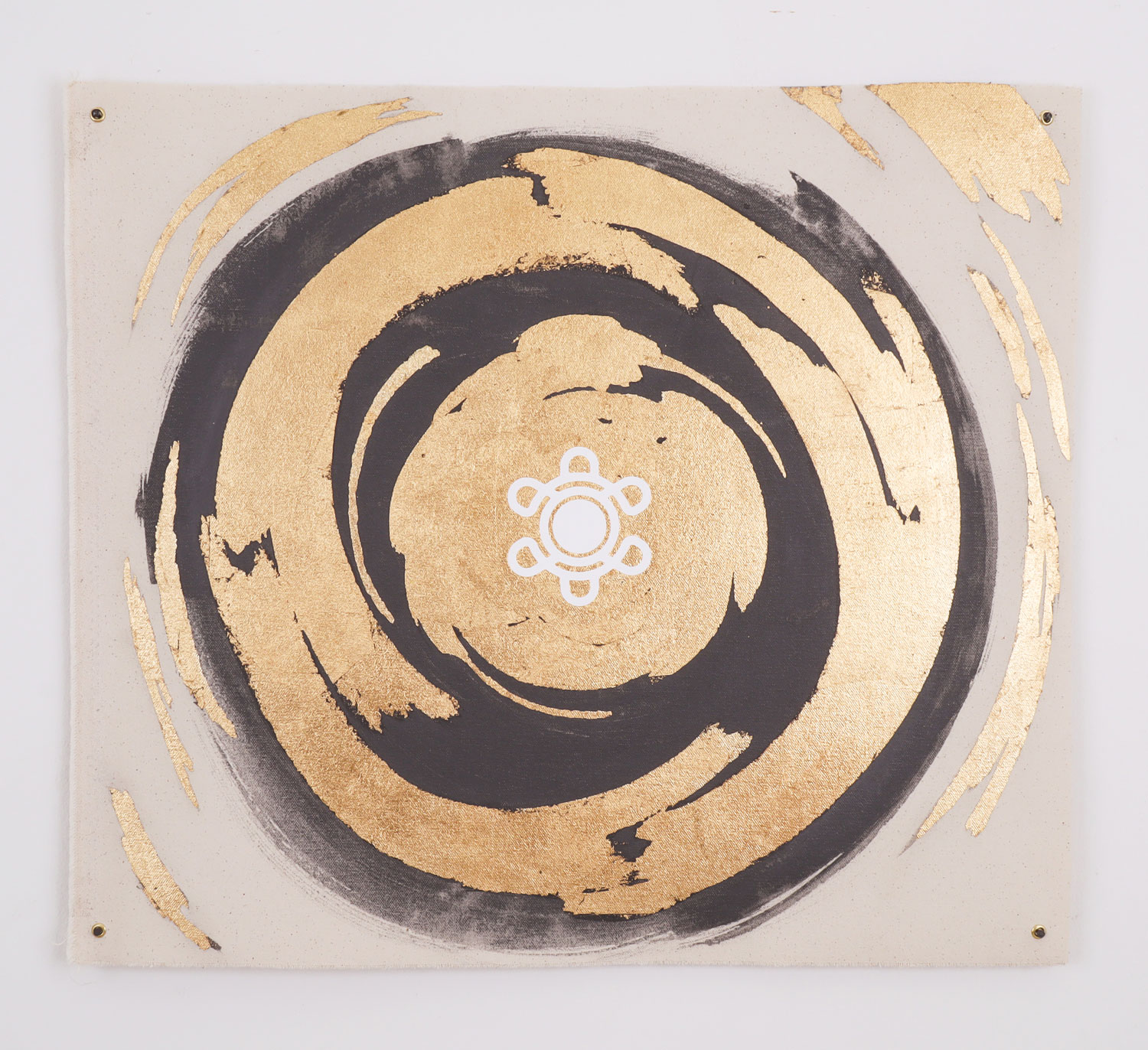 Algodón, 2023Grafito líquido, hojilla de oro y vinil textil sobre tela43,5 x 51 x cm